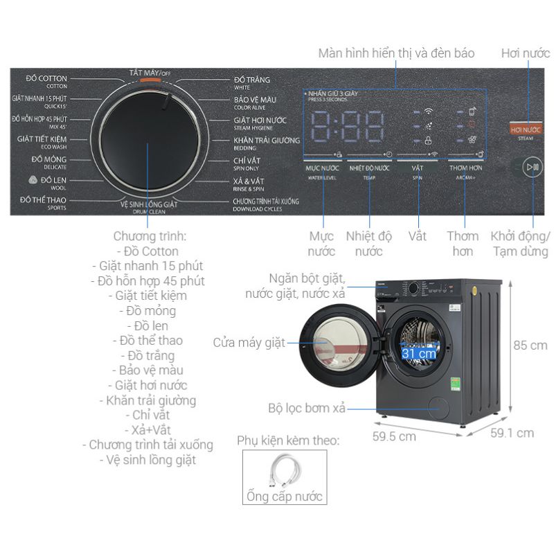 Máy giặt cửa trước Toshiba TW-T21BU110UWV(MG)