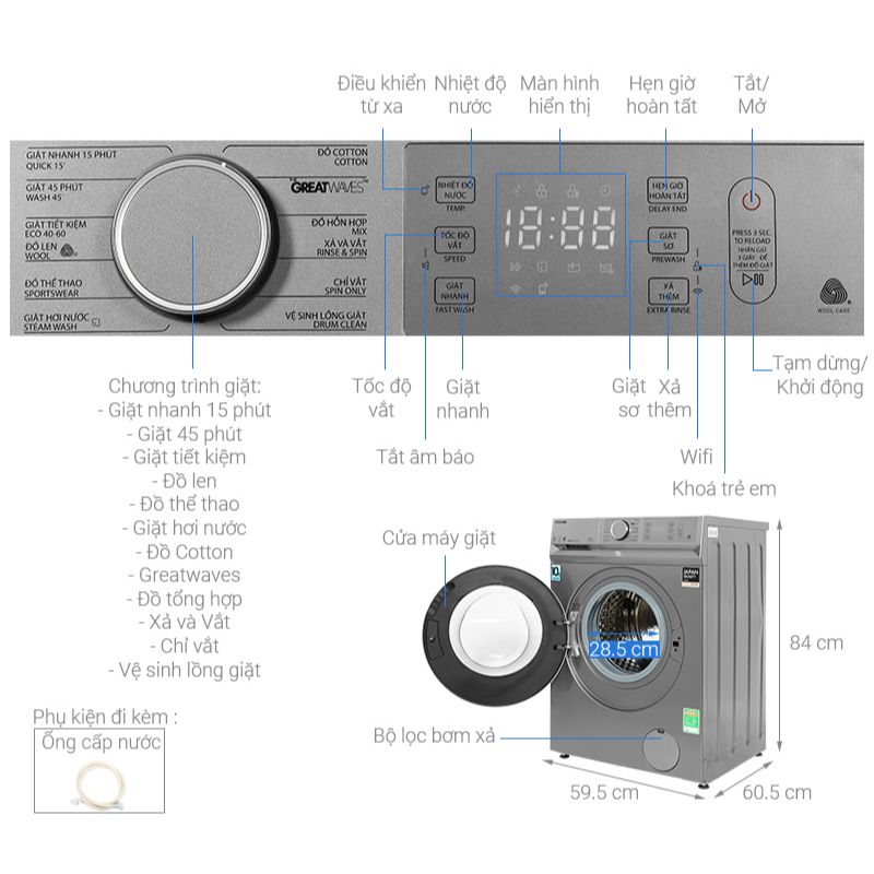 - Tăng cường bảo vệ chất vải, đánh bật vết bẩn cứng đầu cùng công nghệ Greatwaves siêu sóng.