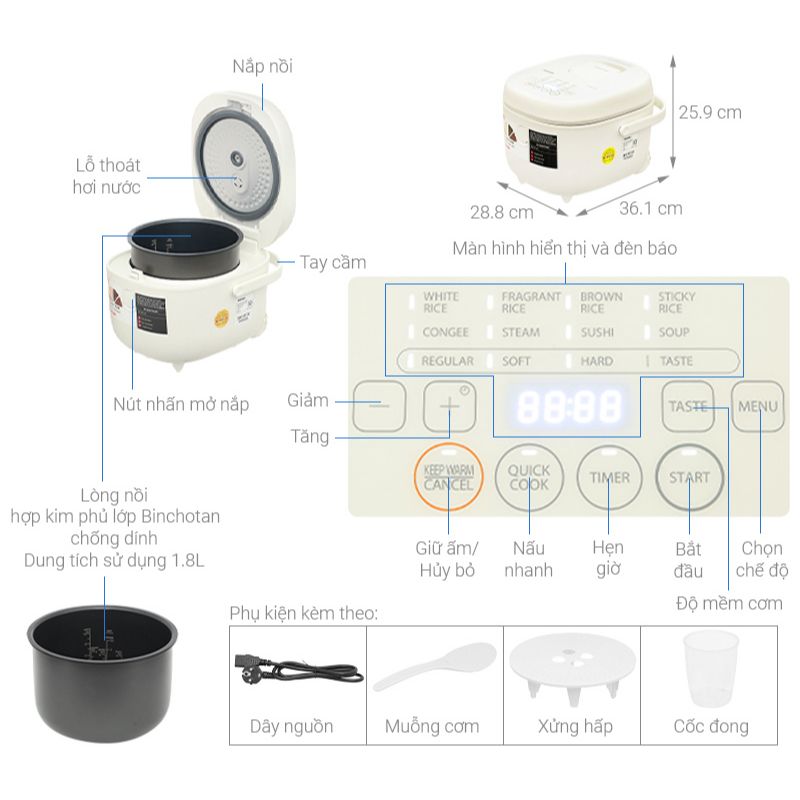 Nồi cơm điện tử TOSHIBA RC-18DR4TVN(H/W)